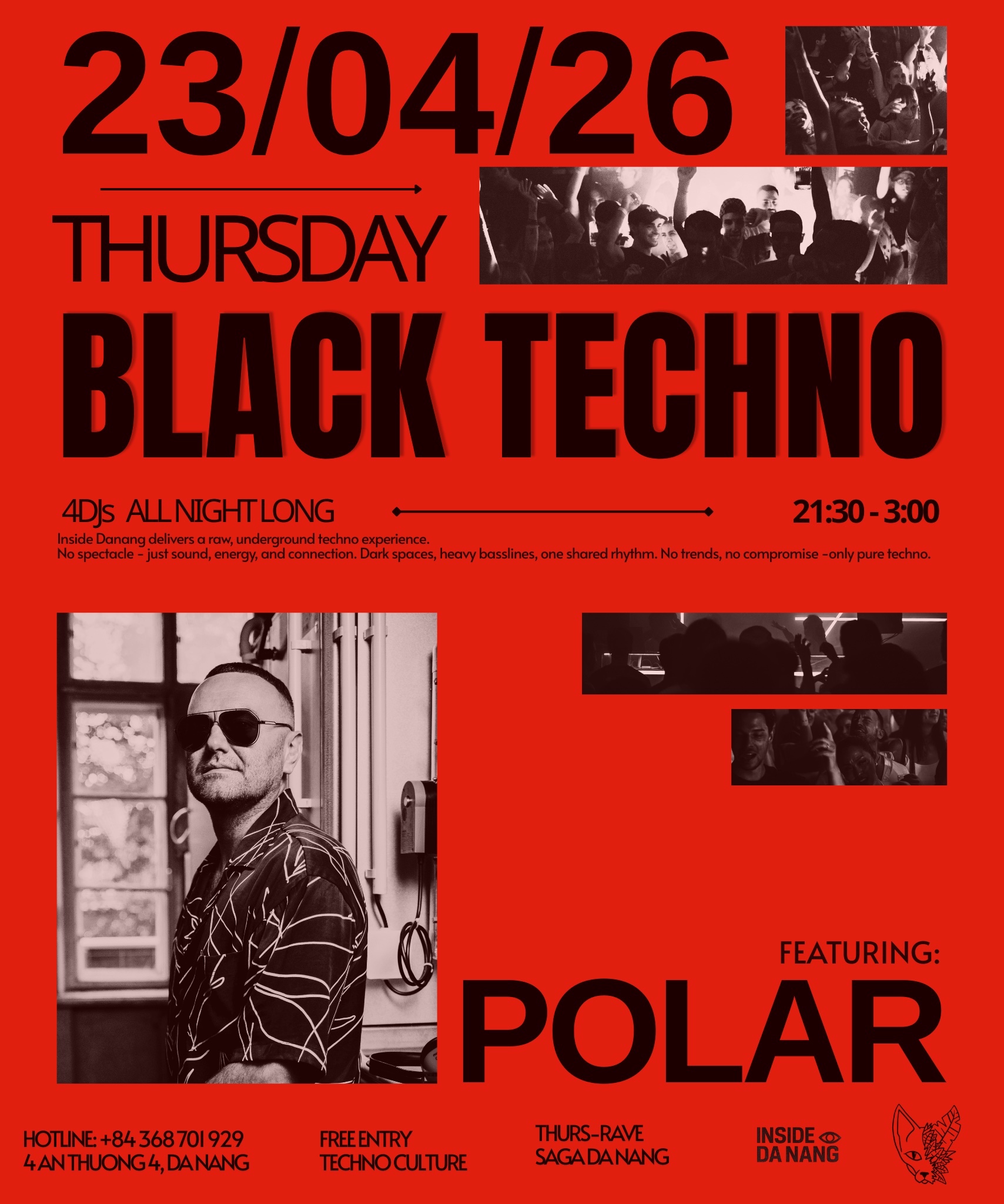 A night focused purely on sound, groove, and connection. This week, INSIDE DANANG brings a refined journey – from groove-driven openings, to controlled peak-time energy, and a melodic, hypnotic core led by POLAR.